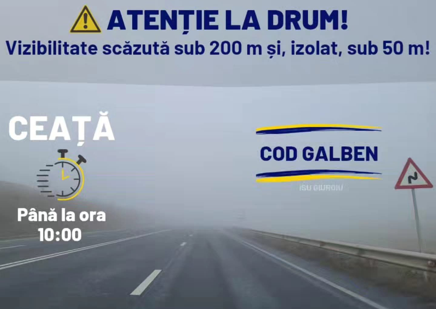 ⚠️Conduceți prudent! Cod galben de ceață valabil în județul Giurgiu