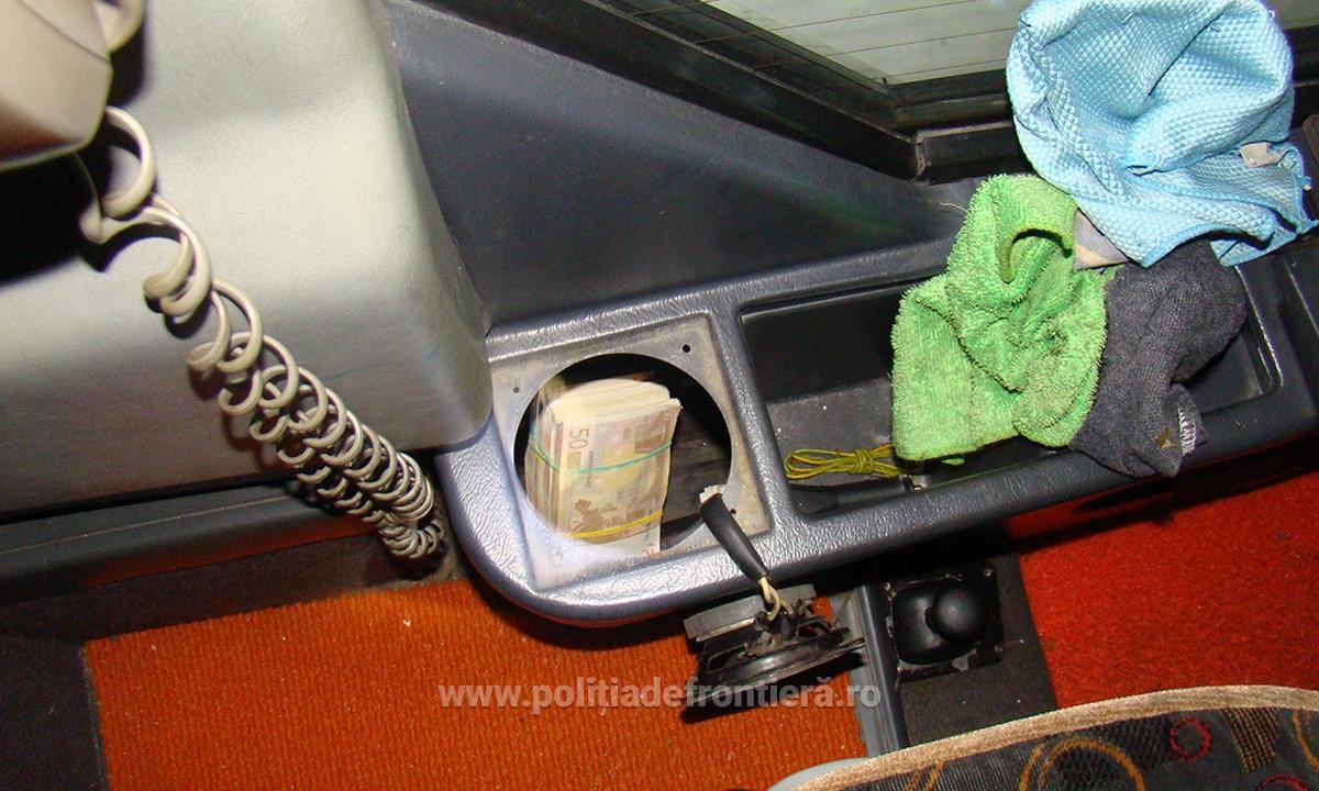 De asemenea, în autocar a fost descoperită, ascunsă în suportul de pahare aflat pe ușa şoferului, suma de 100.000 euro, iar asupra mai multor pasageri din autocar 50.000 euro, care urmau să fie înapoiați șoferului când ajungeau la destinaţie, în Turcia. Totodată, asupra uneia dintre pasagere, Olguţa F., în vârstă de 48 ani, a fost descoperit, ascuns pe corp, un lingou din metal galben, în greutatea de 1,7 kg.