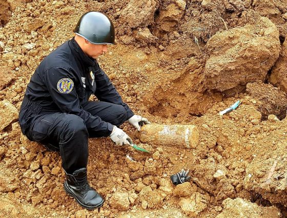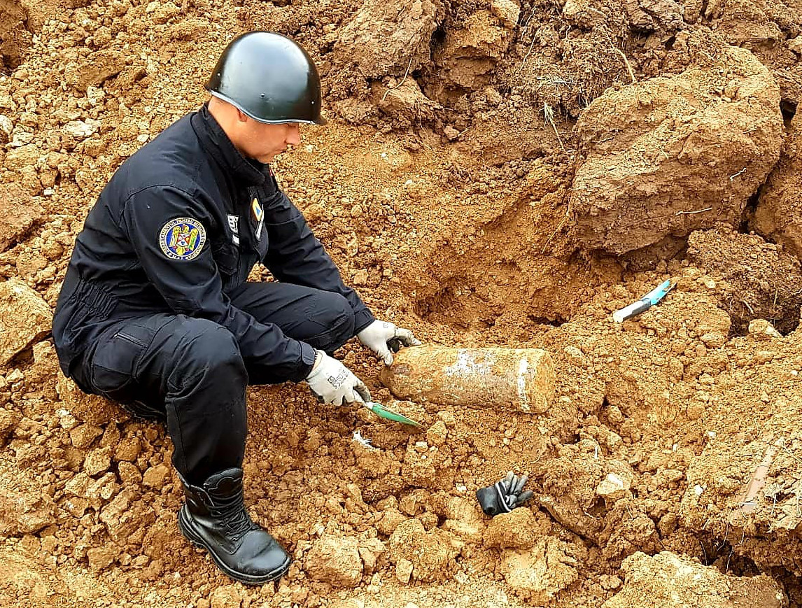 Proiectil exploziv de calibrul 152 mm, descoperit în urma unor lucrări de excavare (FOTO)