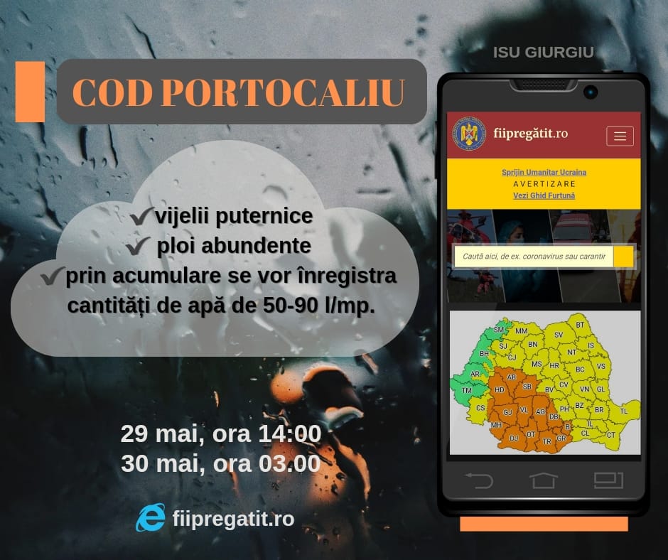 Judeţul Giurgiu, COD PORTOCALIU de instabilitate atmosferică temporar accentuată