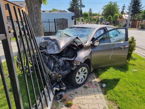 Eveniment rutier. A intrat într-un stâlp de electricitate şi a părăsit locul „faptei” (FOTO)