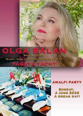 Duminică, 4 iunie, tot la „Pagaya Yacht” „a dream day” – „Amalfi Party”, special guest Olga Bălan, cu muzică din inima Italiei.