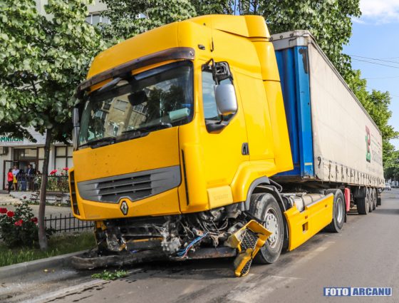 În urma evenimentului, a rezultat „vătămarea” serioasă a sensului giratoriu şi a TIR-ului. Şoferul nu a păţit nimic.