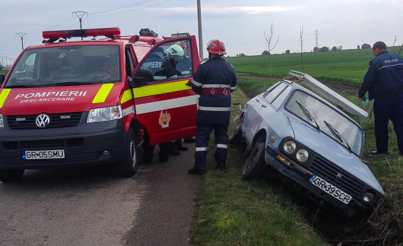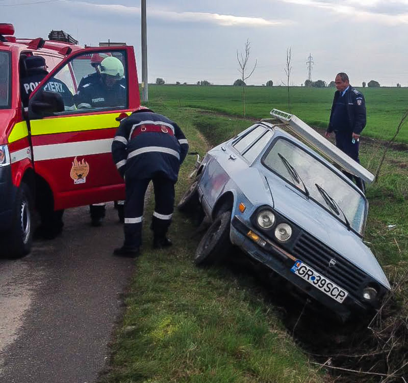 ACCIDENT! Giurgiuvean rănit după ce a ajuns cu maşina în şanţ (FOTO)