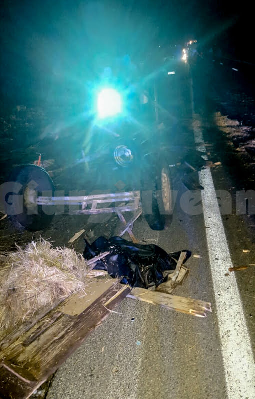 Şoferul unei Dacia Logan, care circula spre Ghimpaţi, a acroşat o căruţă care circula în faţa sa, după care a pătruns pe contrasens, unde a intrat în coliziune cu un autocamion.