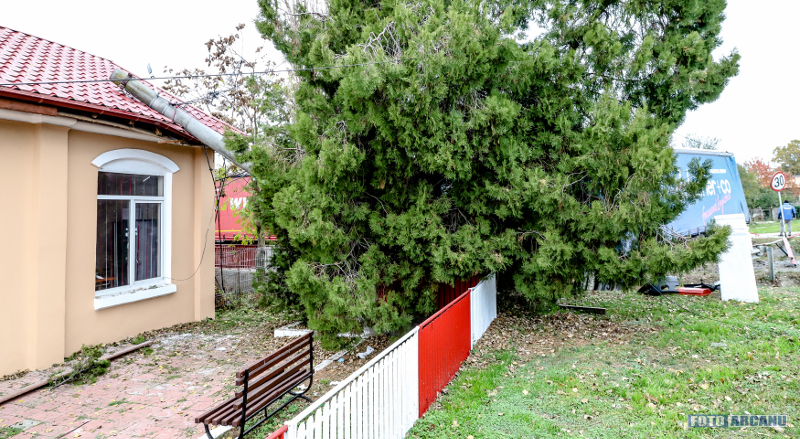 Un accident rutier a avut loc astăzi, în localitatea Călugăreni, după ce un autotren a spulberat gardul Muzeului din localitate, oprindu-se într-un stâlp care ulterior a căzut pe acoperişul clădirii.