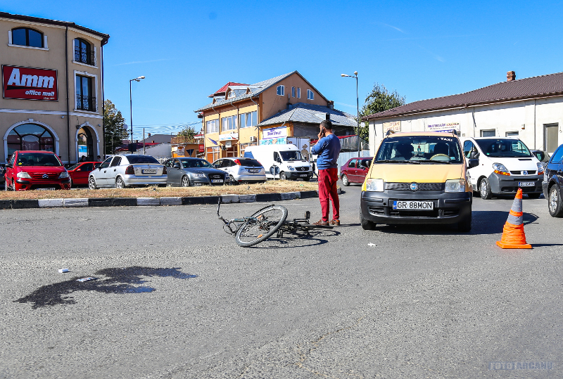 Un accident rutier s-a produs în jurul orei 12.14, în Piaţa Gării, din Giurgiu, în zona sensului giratoriu de la Căprioara. Şoferul unui Fiat, un bărbat de 46 de ani, din Giurgiu, nu a acordat prioritate unui biciclist, un bărbat de 64 de ani, din Giurgiu, accidentându-l uşor pe acesta.