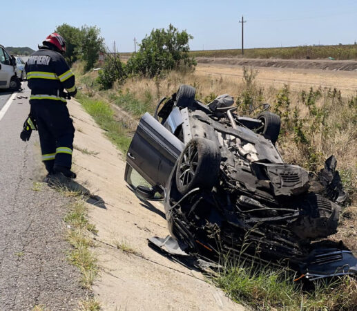 Echipajele de intervenție au găsit autoturismul răsturnat în afara carosabilului, însă, din fericire, nu au fost persoane încarcerate.