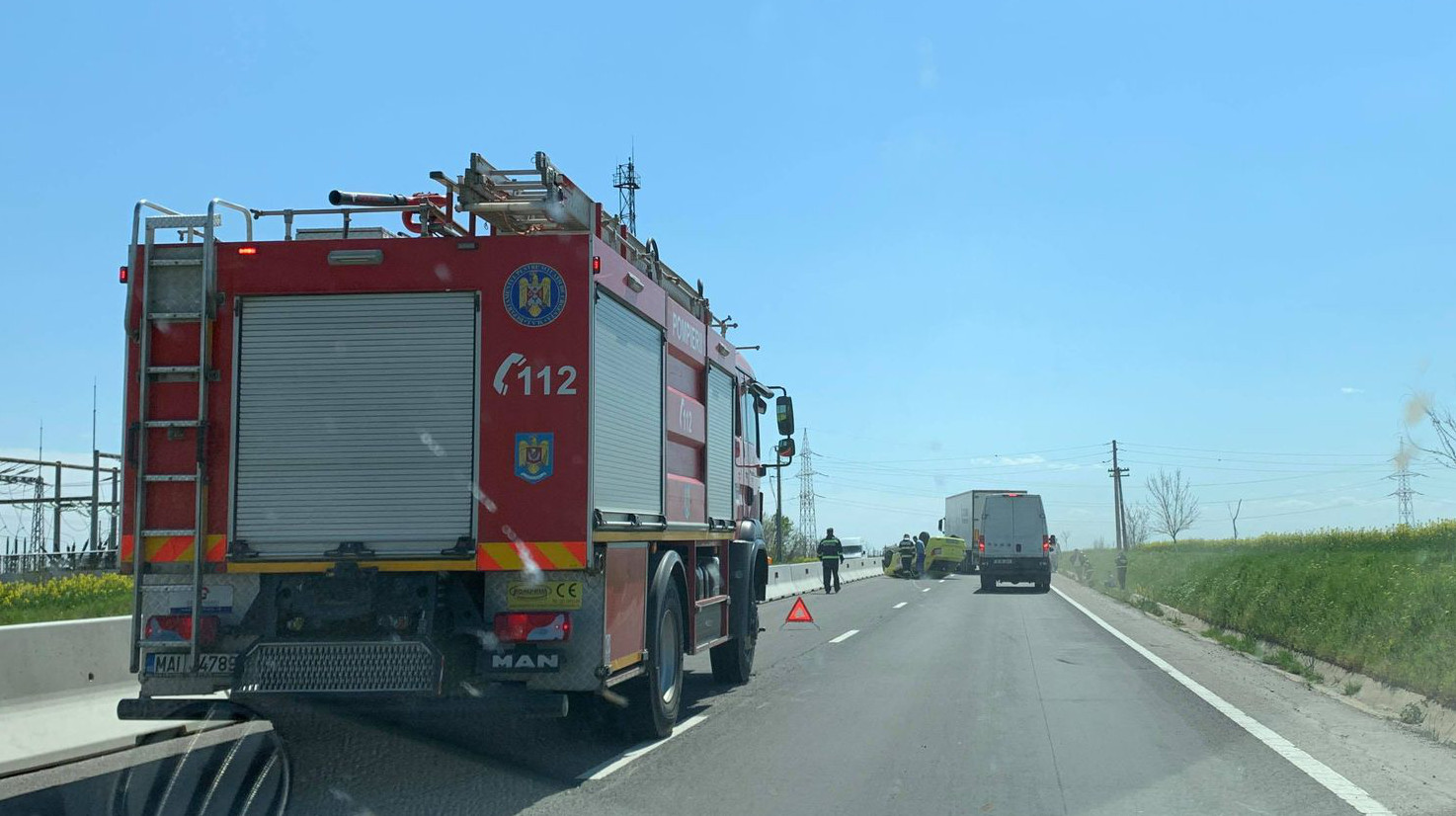 În urmă cu puţin timp s-a produs un ACCIDENT RUTIER pe DN5. Este vorba despre un taxi răsturnat.