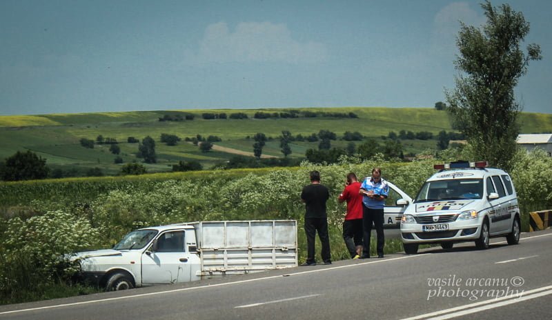 O giurgiuveancă, de 30 de ani, în timp conducea o autoutilitară marca Dacia Papuc, în sensul Bucureşti spre Giurgiu, din cauza unei defecţiuni tehnice, a pierdut controlul asupra direcţiei de deplasare şi a părăsit şoseaua ajungând pe şanţul din dreapta.