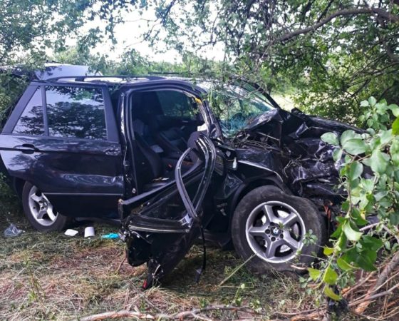 În accident a fost implicat un singur autoturism, care a părăsit partea carosabilă și a intrat într-un copac de pe marginea drumului.