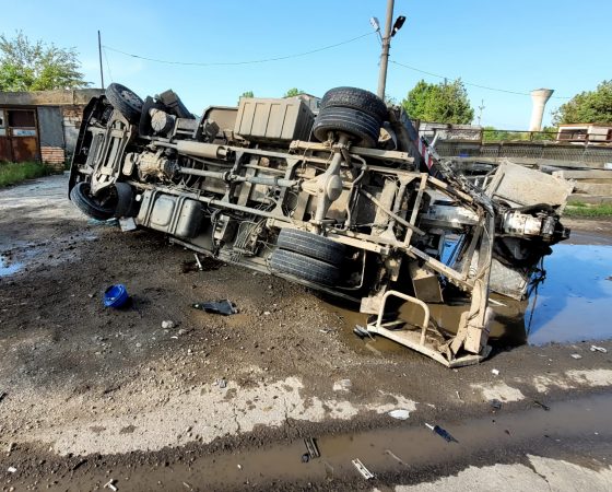 Unul dintre autovehicule a fost găsit răsturnat pe o parte, la marginea drumului. Nu au fost persoane încarcerate.