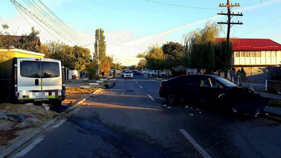Au fost implicate un microbuz de transport marfă și un autoturism.
