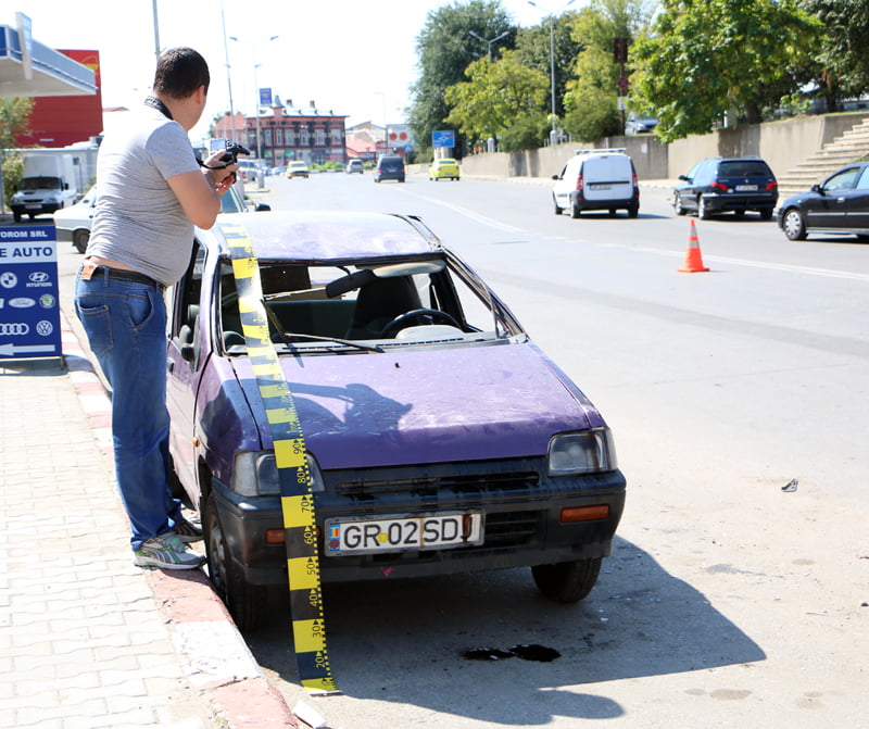 care a ieşit din benzinărie, nu a acordat prioritate de trecere şi a intrat în coliziune cu o maşină Tico, ce circula regulamentar. Autoturismul Tico s-a răsturnat.