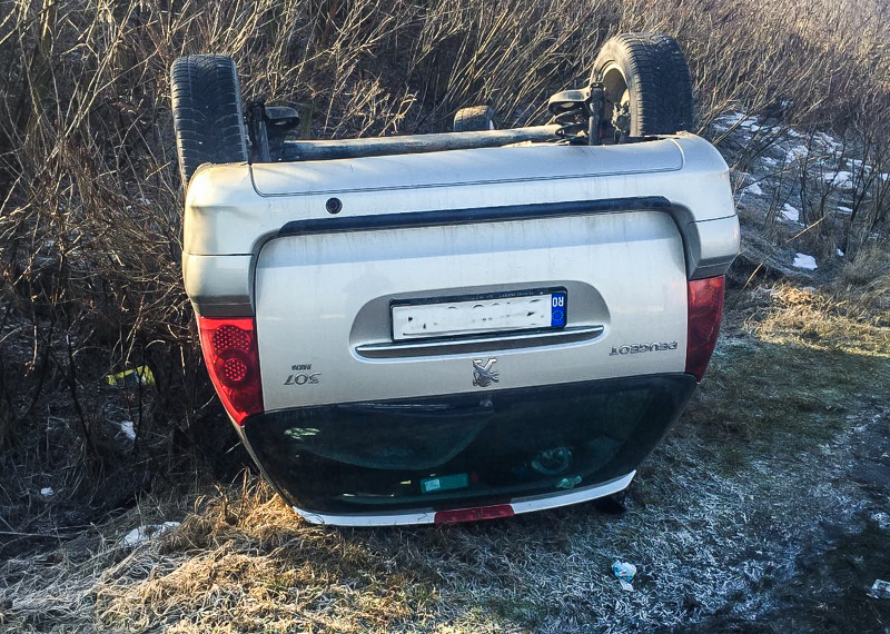 Un autoturism Peugeot s-a răsturnat în afara carosabilului, accidentul soldându-se doar cu pagube materiale, potrivit martorilor.