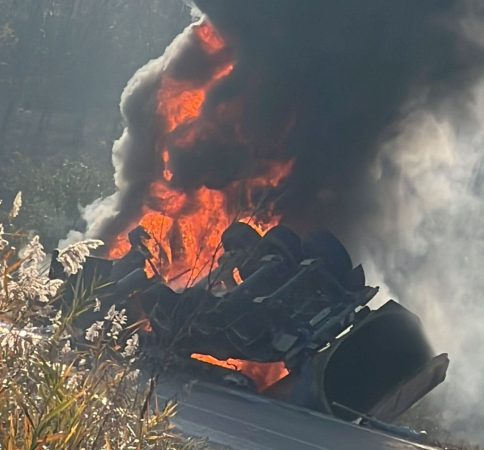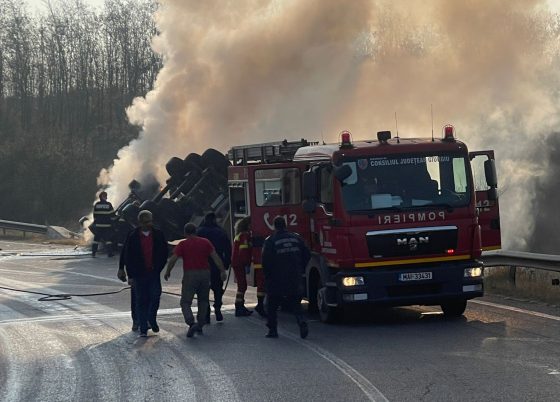 ACUM. Un TIR s-a răsturnat şi a luat foc (FOTO)