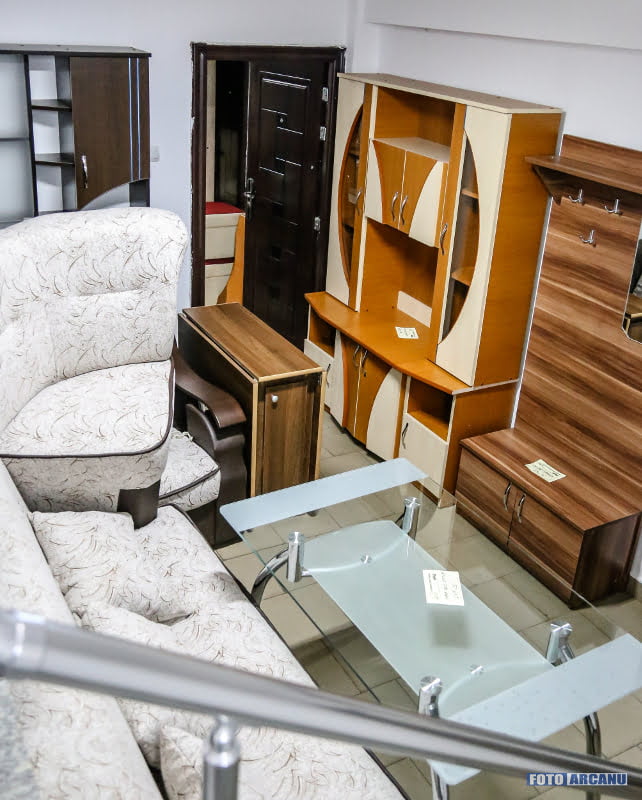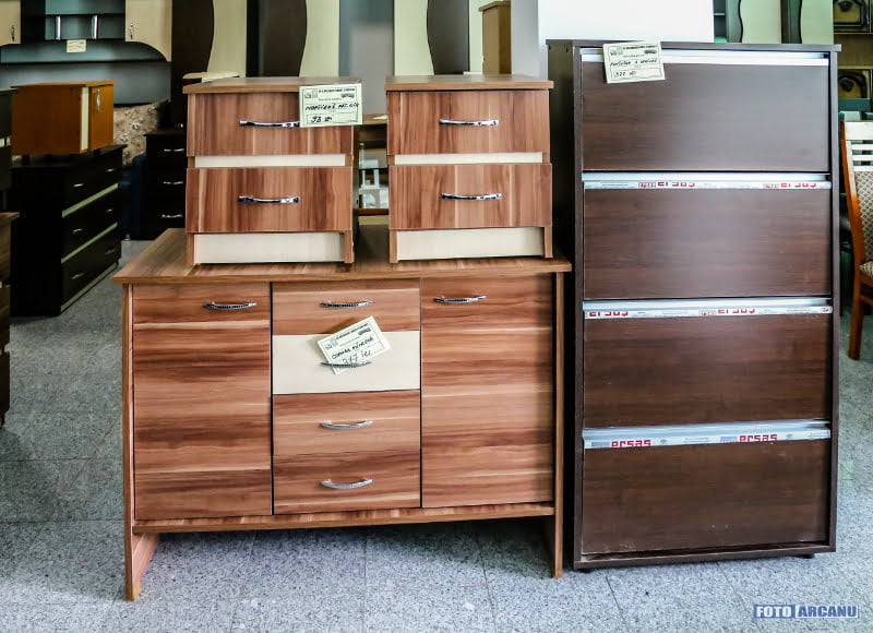 Ca să vă faceți o idee, vă oferim un set de fotografii, şi vă informăm, totodată, că aici puteţi achiziţiona dormitoare, bucătării, biblioteci, tot felul de birouri, bibliorafturi, vitrine, canapele, colţare de sufragerie, noptiere, şifoniere cu 2, 3 sau 4 uşi şi cu spaţiu TV, comode cu 3 sau 4 sertare, pantofare, fotolii pat, cuiere de hol, camere de tineret.
