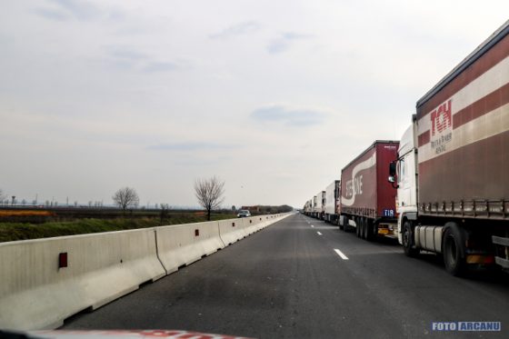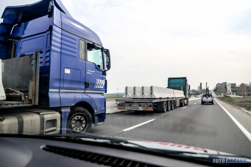 Continuă lucrările de montare a parapetelor de beton, pentru separarea fluxurilor de trafic, pe zona mediană a DN 5 (Giurgiu-Bucureşti).