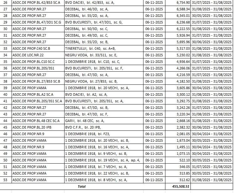 Măsurile amintite se impun întrucât s-a observat că, pe de o parte există asociații care au încasat sume de la consumatori dar întârzie plățile către operator, pe de altă parte unele restanțe sunt vechi de peste 6 luni, unele fiind chiar la nivelul anului 2022.