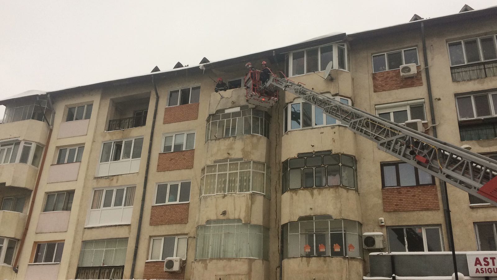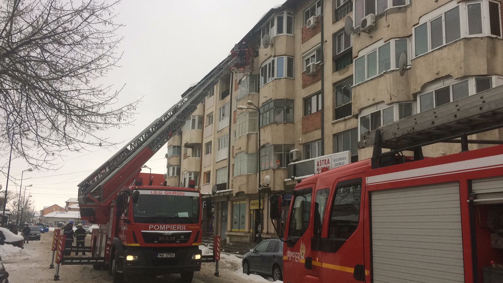 Detaşamentul de pompieri Giurgiu a fost solicitat să intervină pentru a îndepărta nişte elemente de construcţie desprinse de pe faţada unui balcon. Pompierii intervin cu autoscara pentru a îndepărta elementele de construcţie care erau parţial desprinse şi care puneau în pericol persoanele care treceau pe lângă imobil.
