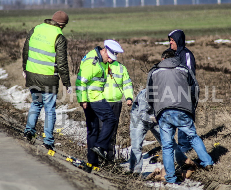 20150221-IMG_9379Cadavrul unui bărbat, deocamdată neidentificat, a fost descoperit în şanţ, în apropiere de localitatea Plopşoru. La faţa locului s-a deplasat o echipă formată din poliţişti judiciarişti, criminalişti, poliţişti de la Rutieră şi un medic legist, coordonată de un procuror. Prima concluzie a criminaliştilor, în cazul cadavrului abandonat pe DN5: bărbatul a fost accidentat mortal de un autovehicul care a părăsit apoi locul faptei.