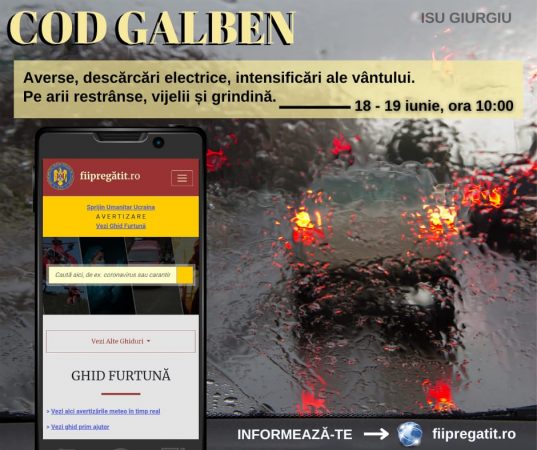 Pe platforma Națională de Pregătire pentru Situații de Urgență FII PREGĂTIT pot fi consultate ghidurile special create pentru a afla cum vă puteți proteja în diverse situații de urgență, generate de fenomene meteo extreme.