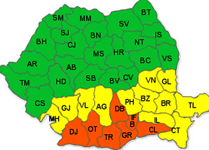 cod-portocaliuCanicula va persista marţi în sudul şi sud-estul ţării, pentru şapte judeţe fiind emis Cod Portocaliu şi pentru alte 12 Cod Galben. Astfel, potrivit Administraţiei Naţionale de Meteorologie, judeţele Dolj, Olt, Teleorman, Dâmboviţa, Giurgiu, Călăraşi şi Ilfov (inclusiv municipiul Bucureşti) vor fi sub Cod portocaliu, iar temperaturile maxime Continue reading