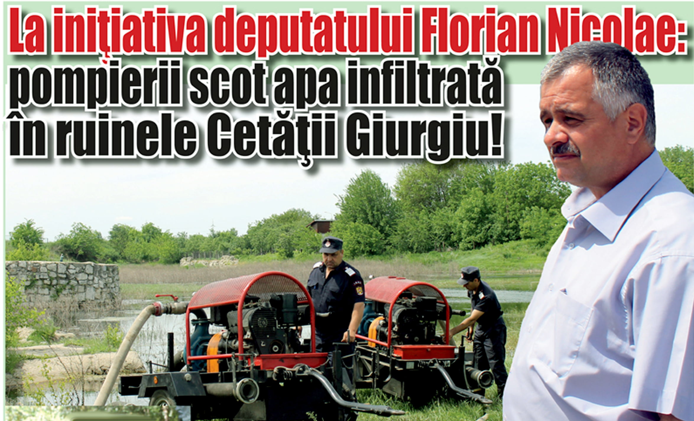 La iniţiativa deputatului Florian Nicolae: pompierii scot apa infiltrată în ruinele Cetăţii Giurgiu!