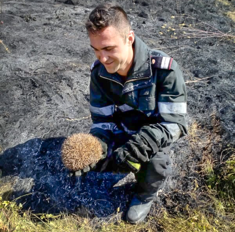 Incendiu la Sadina! Pompierii giurgiuveni au salvat de la pieire… un arici! (FOTO)