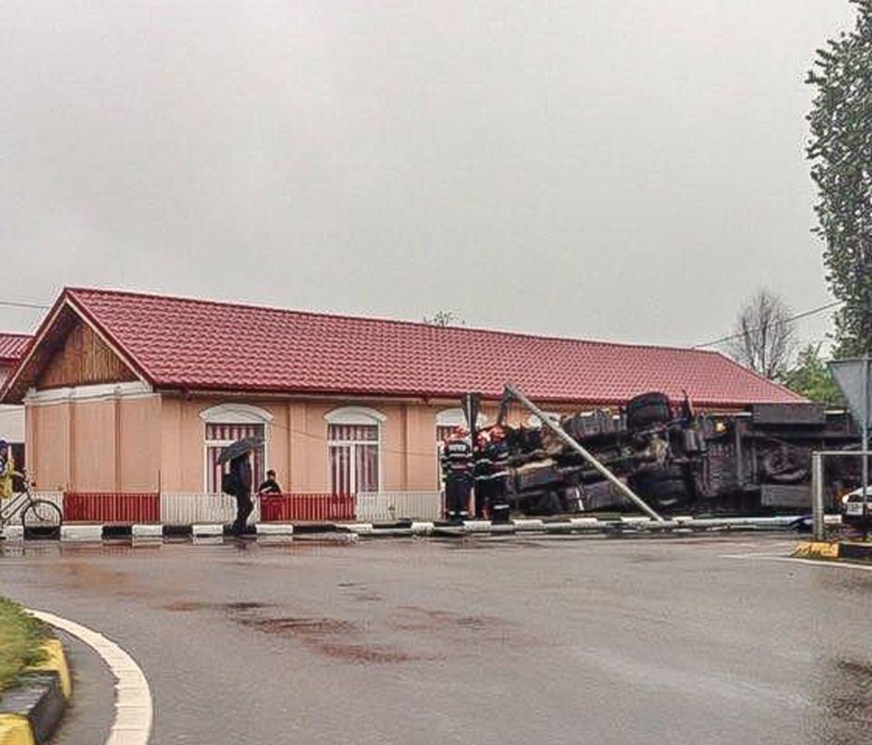 TIR răsturnat pe DN 5. Circulaţia se desfăşoară pe o singură bandă