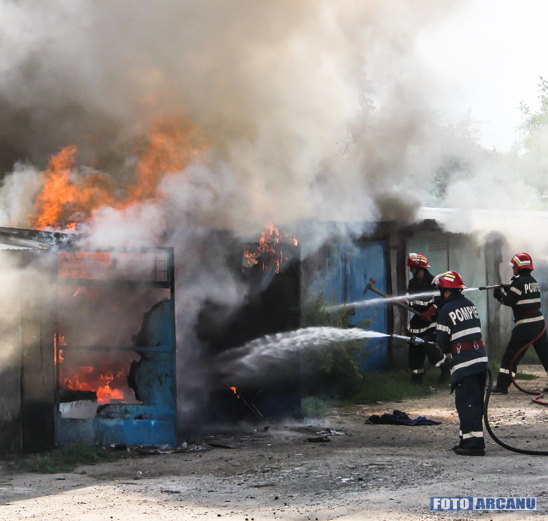 Explozie urmată de incendiu într-un garaj din Giurgiu FOTO