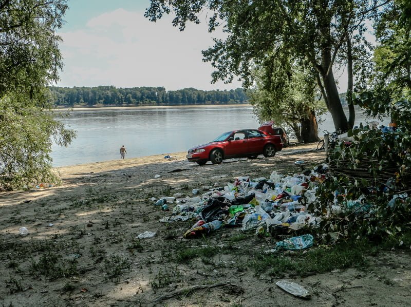 Plajă printre gunoaie şi pet-uri