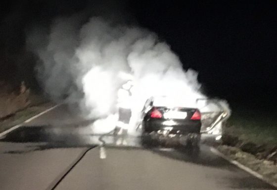 Autoturism în flăcări, aseară în localitatea Mihai Bravu