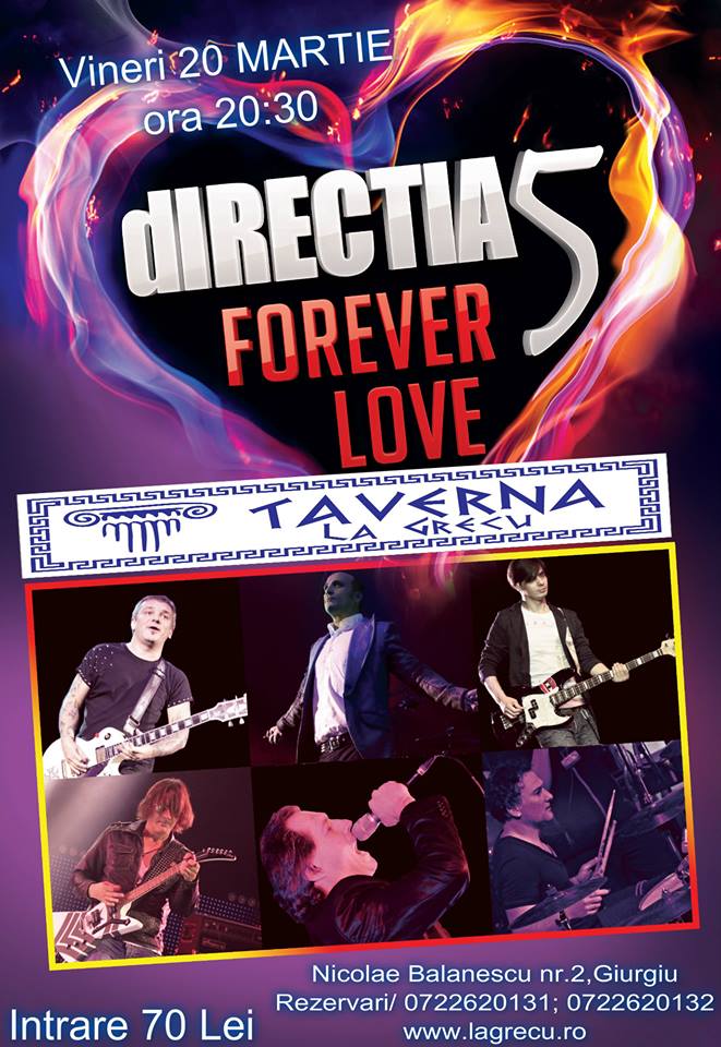 11038123_735286256578450_4392309063782868773_n„Direcţia 5” va reveni în faţa publicului giurgiuvean astăzi, 20 martie 2015, cu începere de la ora 20.30, cu un extraordinar concert „Forever love”, care propune Continue reading