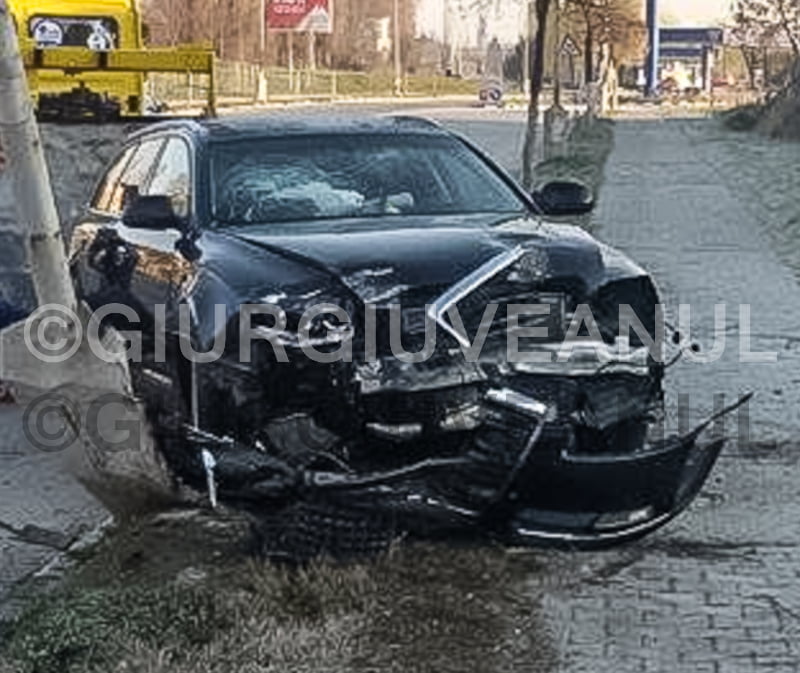 FOTO! Un giurgiuvean beat a avariat un stâlp şi şi-a distrus maşina