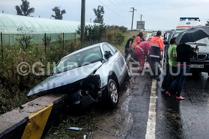 10565745_717702584969770_1204101888_nSâmbătă, 19 iulie 2014, pe DN 5, Bucureşti-Giurgiu, pe sensul cu direcţia spre Giurgiu, în zona Bibiţa, un autoturism Volkswagen Passat, cu numere de înmatriculare de Republica Moldova, condus de un şofer, în vârstă de 38 de ani, a părăsit partea carosabilă, a intrat în şanţ şi s-a oprit într-un cap de pod.