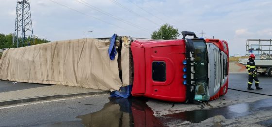 Autotren răsturnat pe DN5 (șoseaua de centură), la sensul giratoriu de la intrarea în Vama Giurgiu