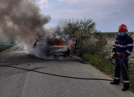 Autoturism cuprins de flăcări, în această după amiază! (FOTO)