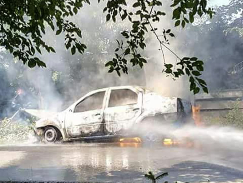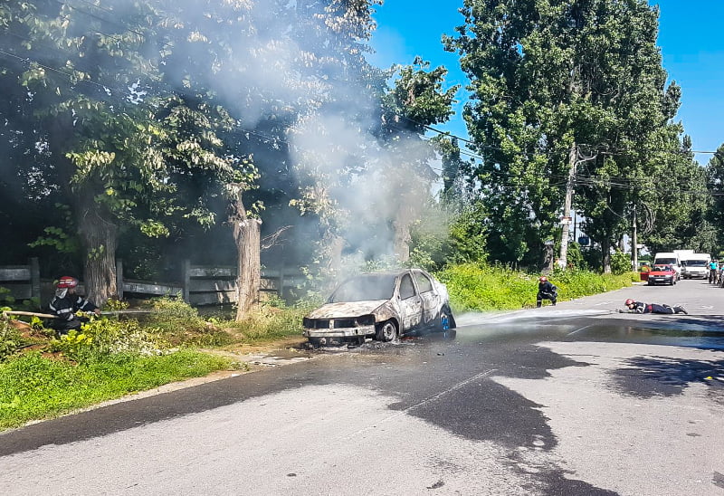 Pompierii au reuşit lichidarea sa, dar autoturismul a fost distrus de flăcări.