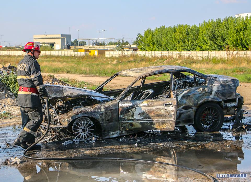 Autoturism în flăcări, la Giurgiu (FOTO)