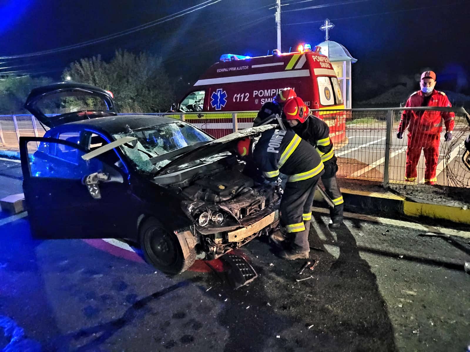 La fața locului s-au deplasat pompierii din cadrul Detașamentului Giurgiu, cu o autospecială de stingere dotată cu modul de descarcerare, un echipaj SMURD și o ambulanță SAJ.