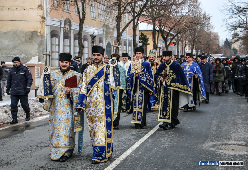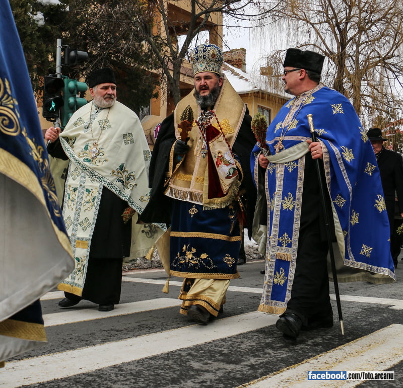 din faţa Catedralei Episcopale către canalul „Sfântul Gheorghe”, unde, într-un loc special amenajat, Preasfinţitul Părinte Ambrozie a săvârşit Slujba de sfinţire a Aghesmei Mari.