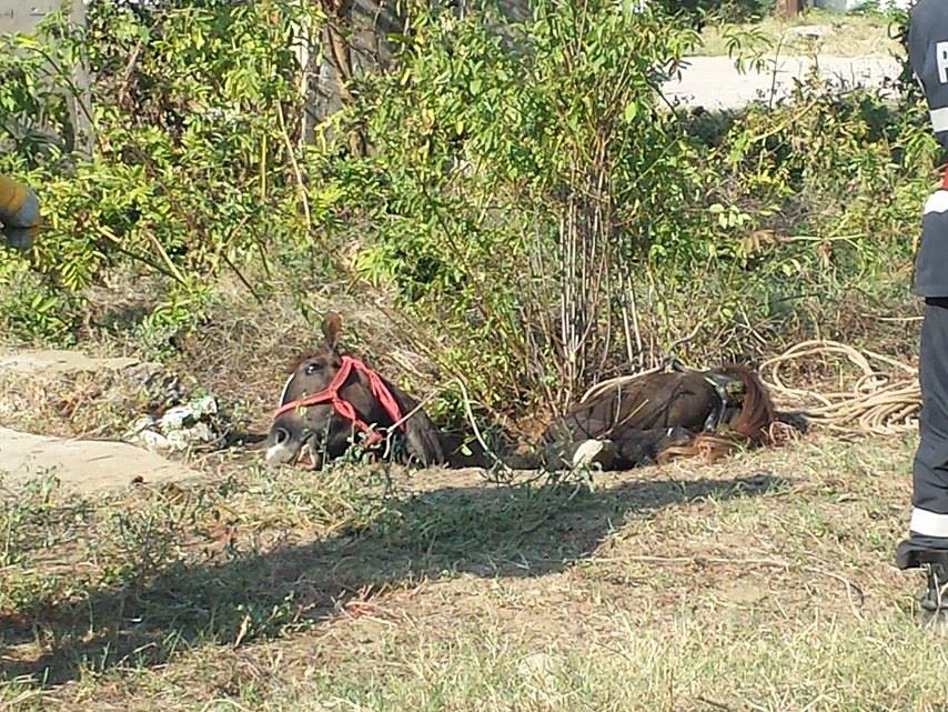 Cal căzut într-un şanţ, scos de pompierii giurgiuveni! (FOTO)