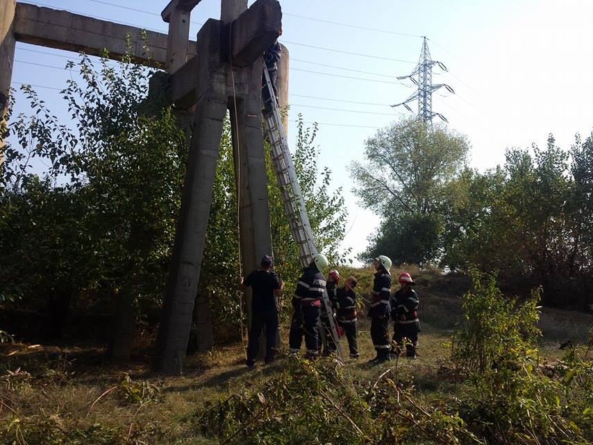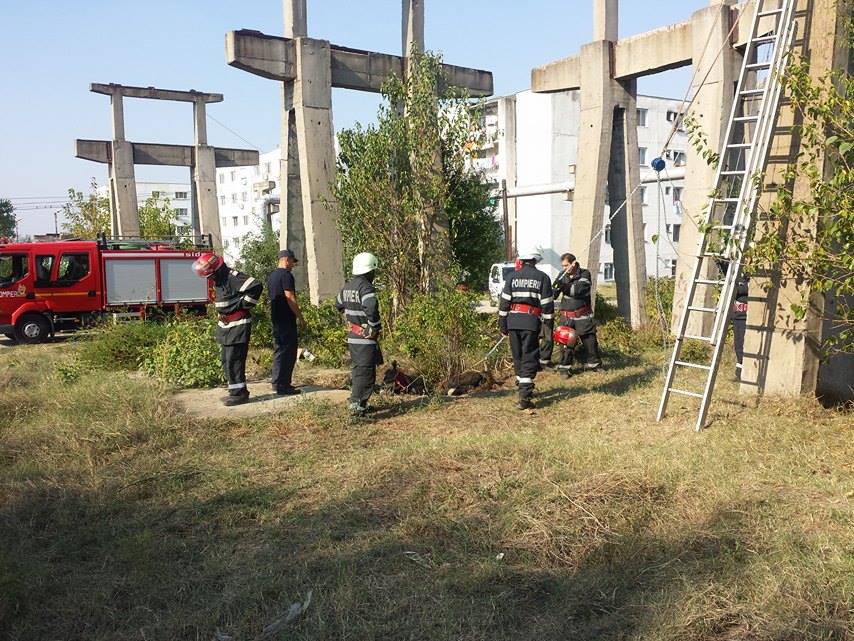 Pentru a scoate bietul animal, pompierii giurgiuveni au acționat cu ajutorul unor accesorii din dotare.