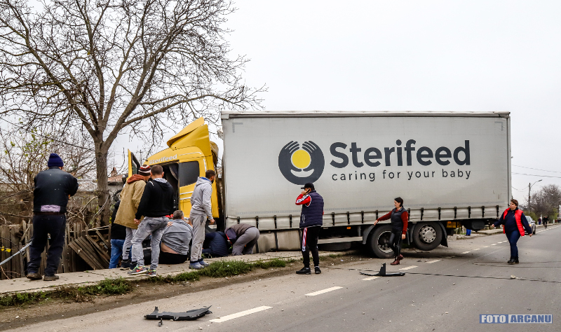 A intrat cu TIR-ul într-un stâlp după ce i s-a făcut rău la volan. S-a întâmplat pe DN5, la Remuş (FOTO)