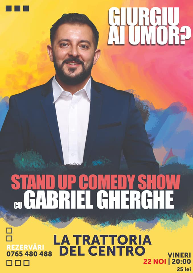 VINERI: Vino să-ţi iei porţia de râs! Stand Up Comedy cu Gabriel Gherghe, „La Trattoria di Centro”!