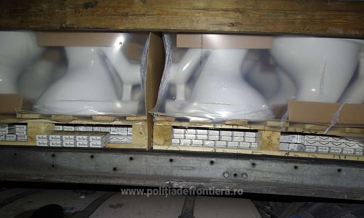 5.790 de pachete de țigări, depistate într-un autocamion cu produse sanitare (FOTO)