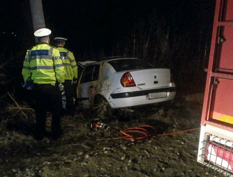 Accident cumplit. Doi tineri, răniţi grav după ce o mașină a intrat într-un stâlp de beton (FOTO)