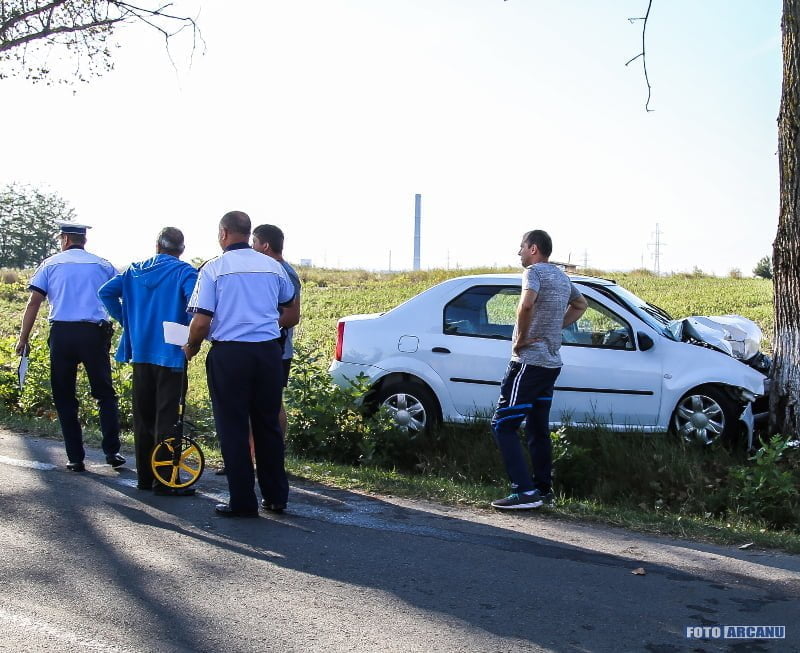 ACCIDENT! O tânără a intrat cu Loganul în copac (FOTO)
