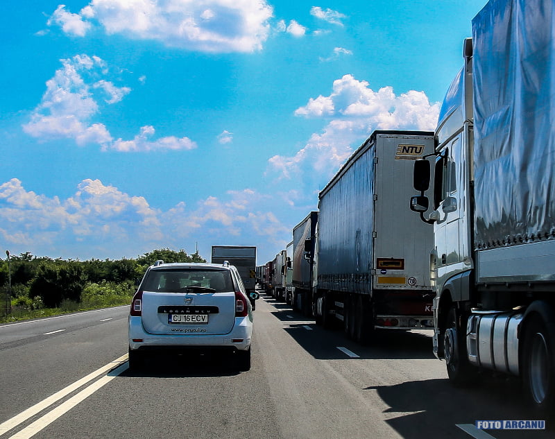 Coadă de Tiruri, la intrarea în Giurgiu. Trecerea frontierei, o grea încercare